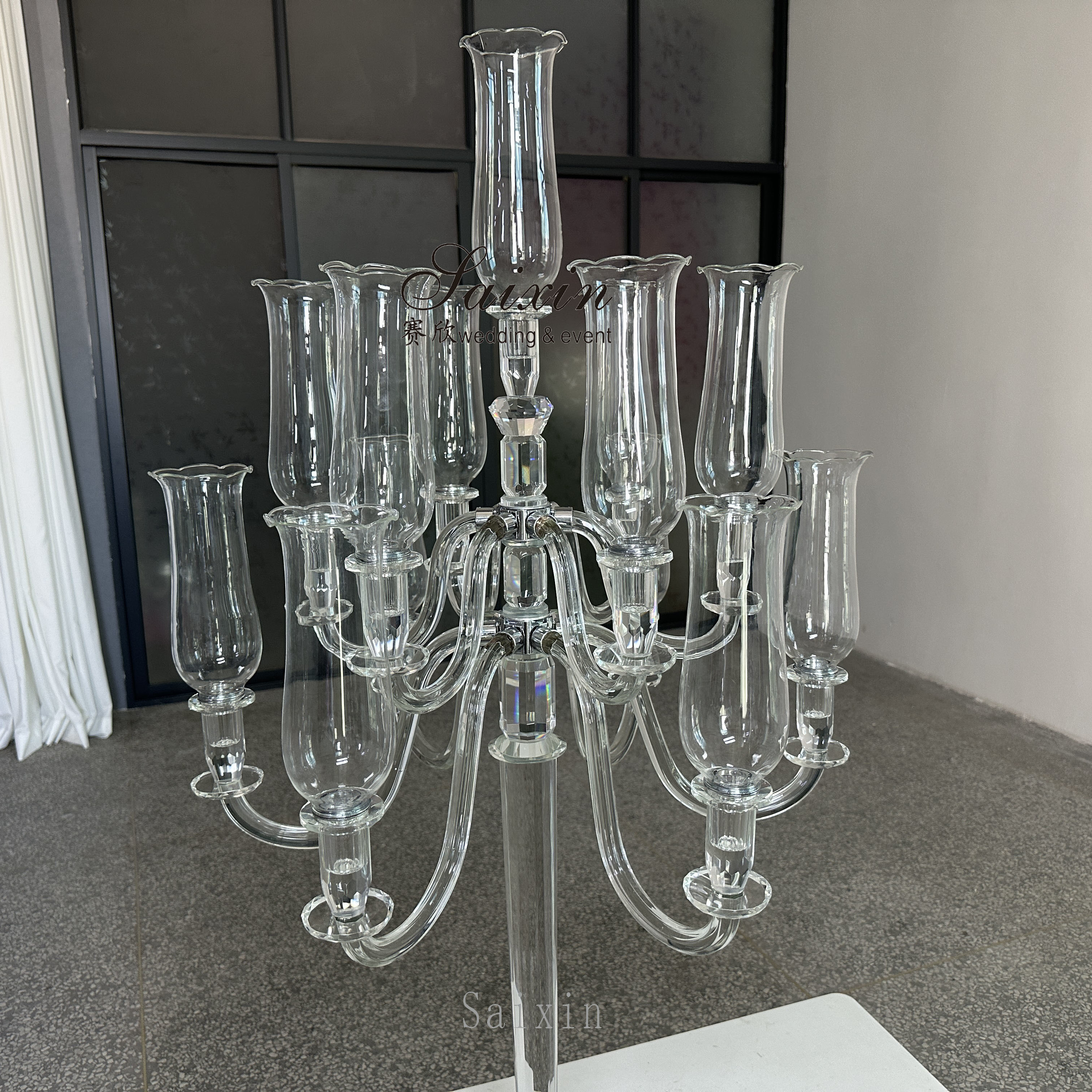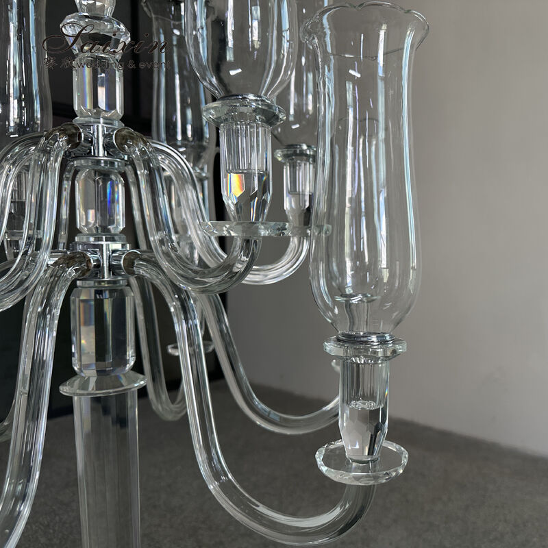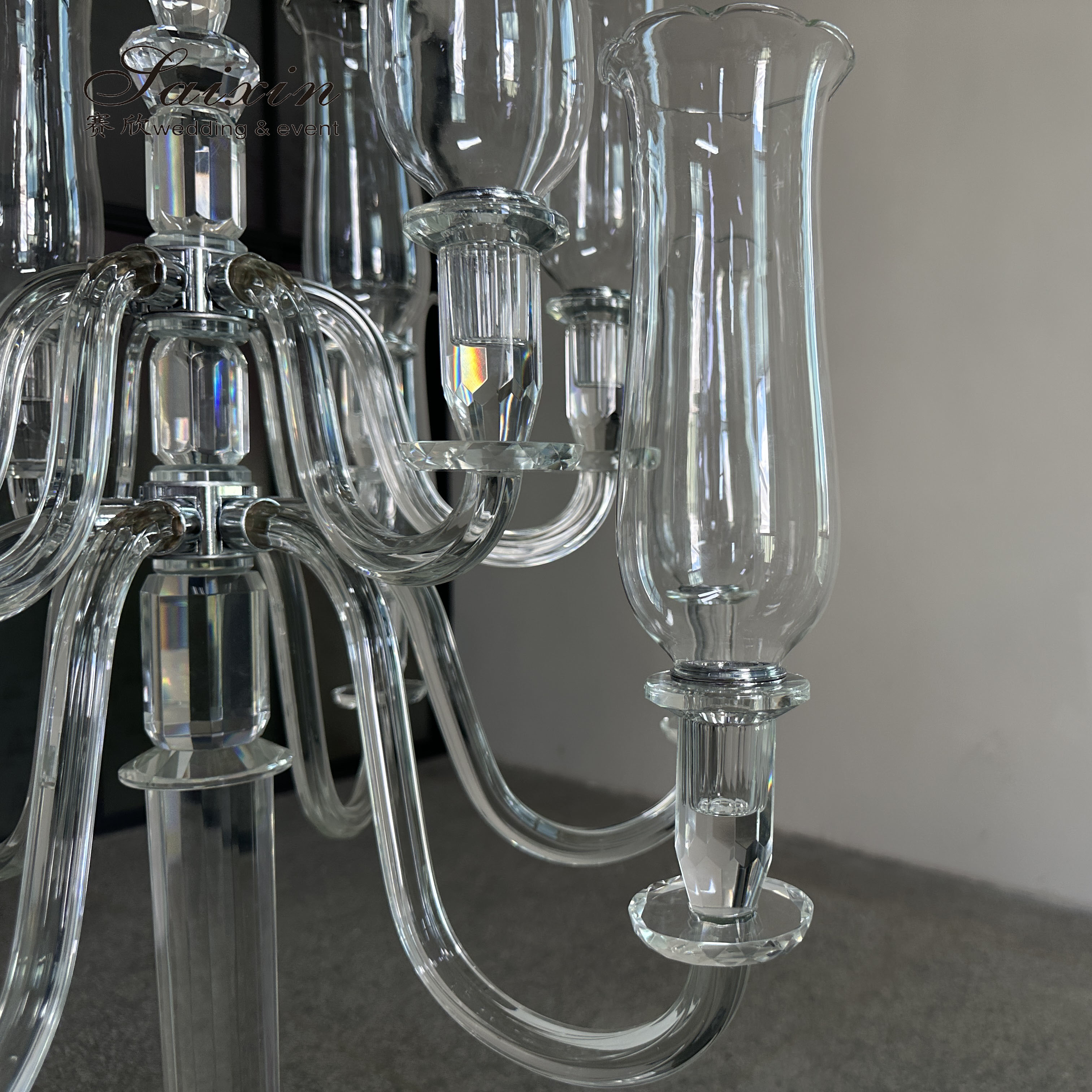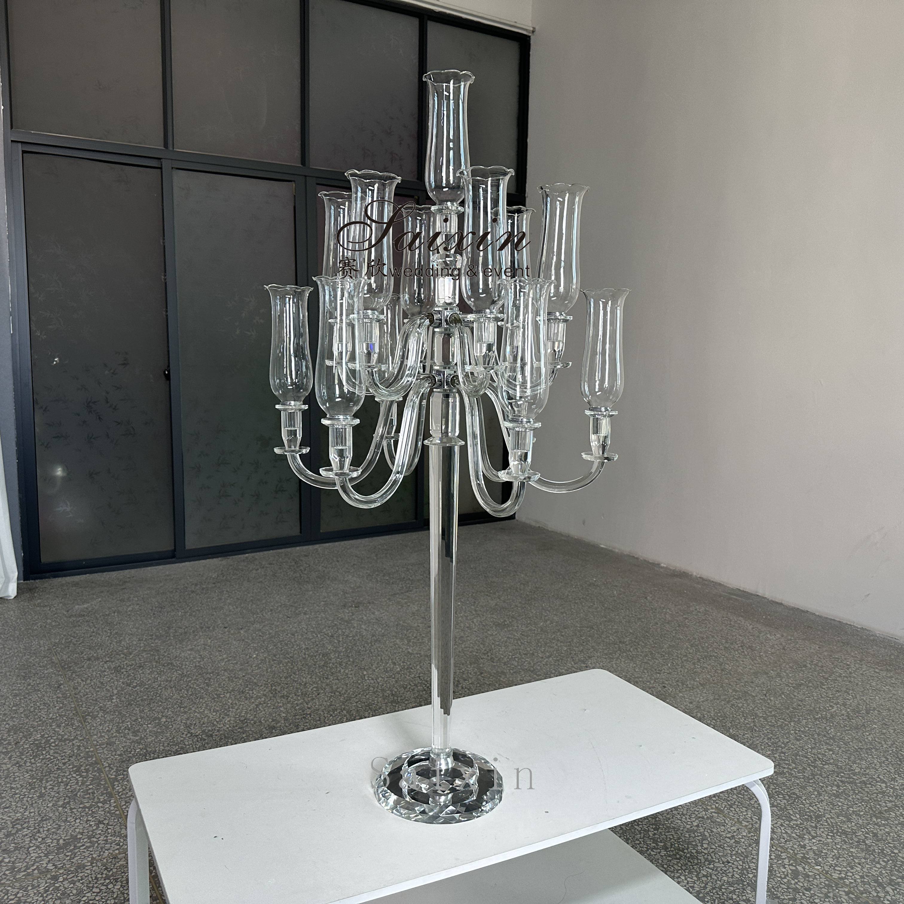 New Luxury 13 Arms Clear Crystal Tall Candelabra for Table & Wedding Decoration